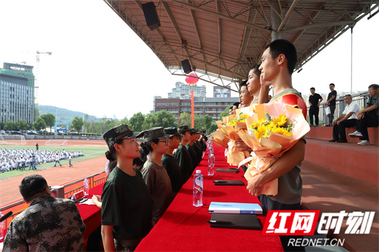 金秋送爽启新篇,迷彩飞扬展风华。9月26日下午,张家界学院2025年新生开学典礼暨军训总结表彰大会在学校田径场举行。近五千名参训新生组成的6个营、26个连队列队云集,以最昂扬的姿态迎接新征程、汇报军训成果,展现出张家界院学子朝气蓬勃的青春风貌。