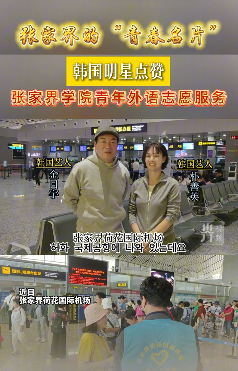 近日,来自张家界学院外语专业的青年志愿者们在张家界荷花国际机场,以专业热情的服务,赢得韩国著名演员金日宇、朴善英的一致好评。
